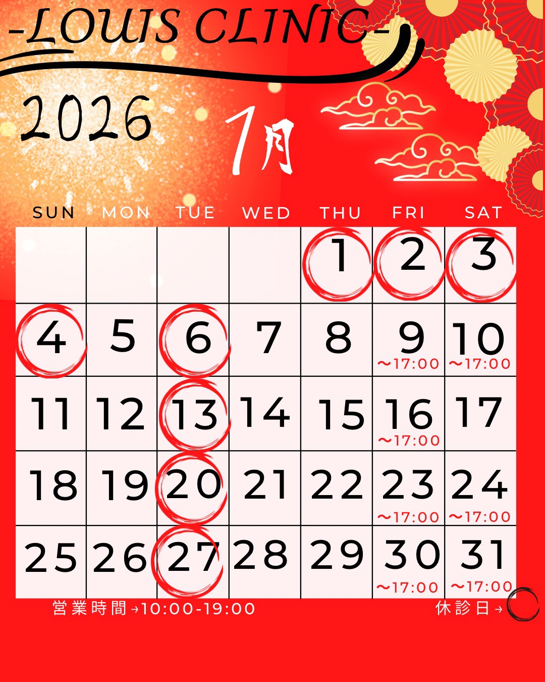 LOUISCLINICの2026年1月の休診日をお知らせいたします。