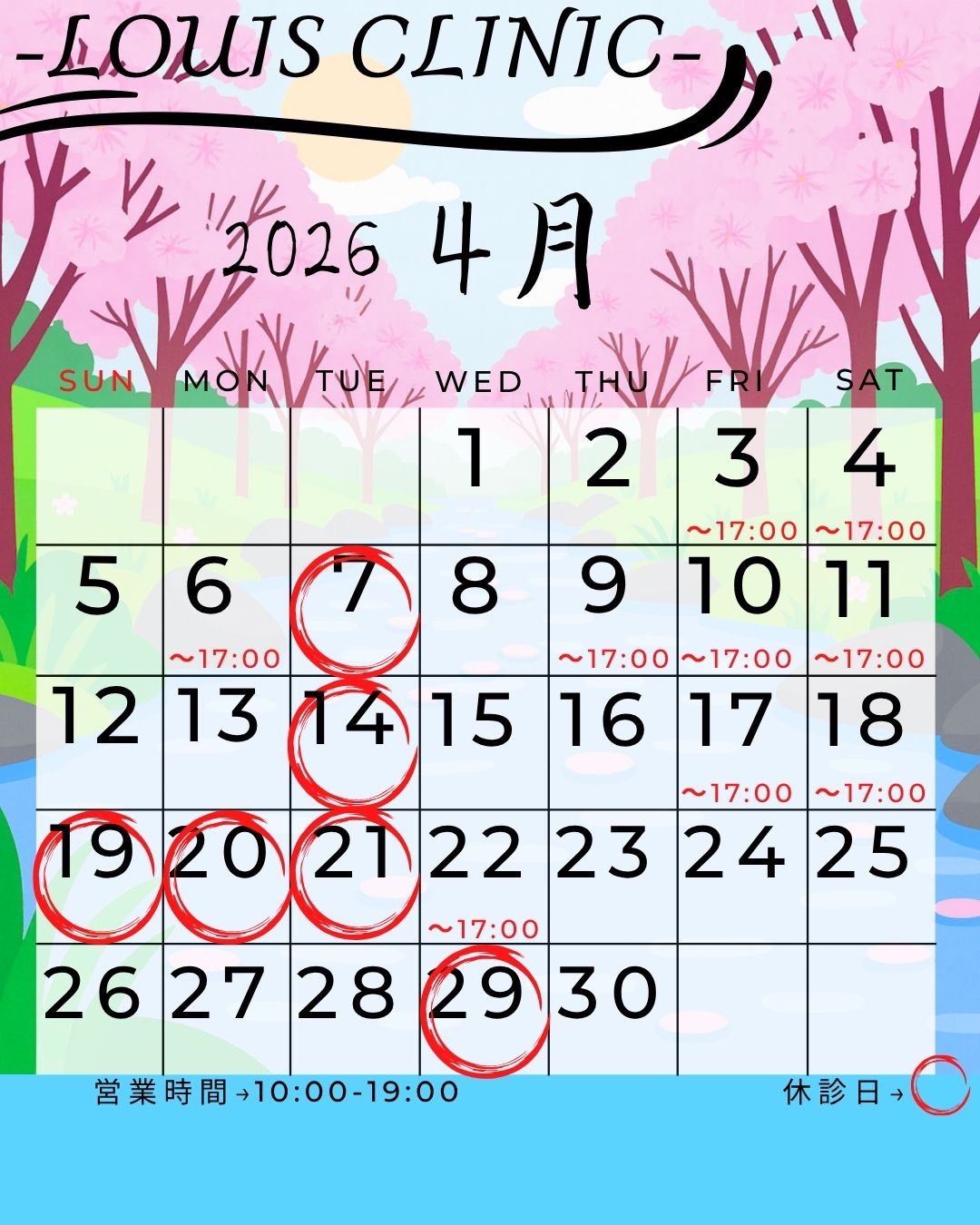 LOUISCLINICの2026年4月の休診日をお知らせいたします。